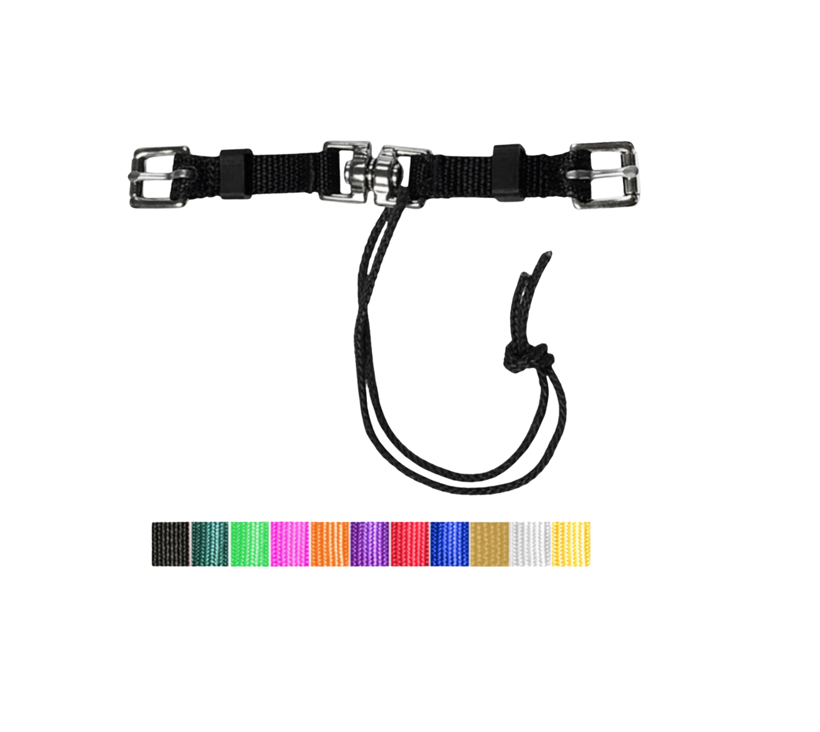 Le bout de guide est une petite sangle réglable conçue pour solidifier et sécuriser l’extrémité d’une guide ou d’une longe. Grâce à ses boucles robustes et son cordon résistant, il permet d’attacher ou de remplacer facilement l’embout d’une longe, assurant une connexion fiable et sécurisée au licou du cheval.