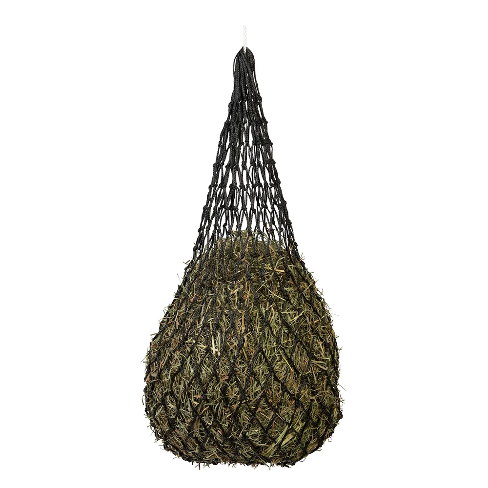 Grâce à son fond plat en tissu solide, le foin reste bien en place, évitant qu’il ne tombe au sol.