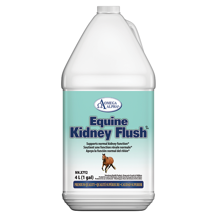 Kidney Flush est un complément liquide conçu pour soutenir la santé rénale du cheval. Il aide à favoriser l’élimination des toxines, à maintenir un bon fonctionnement des reins et à soutenir l’équilibre général de l’organisme. Disponible en format pratique d’un gallon pour une utilisation régulière.