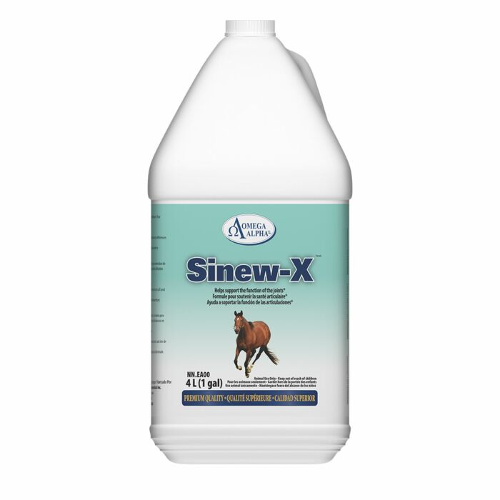 Sinew-X est un complément liquide spécialement conçu pour soutenir la santé des tendons, ligaments et articulations du cheval. Il aide à maintenir la souplesse et la résistance des tissus conjonctifs, favorisant ainsi la mobilité et la récupération après l’effort. Format pratique de 4L pour une utilisation régulière.